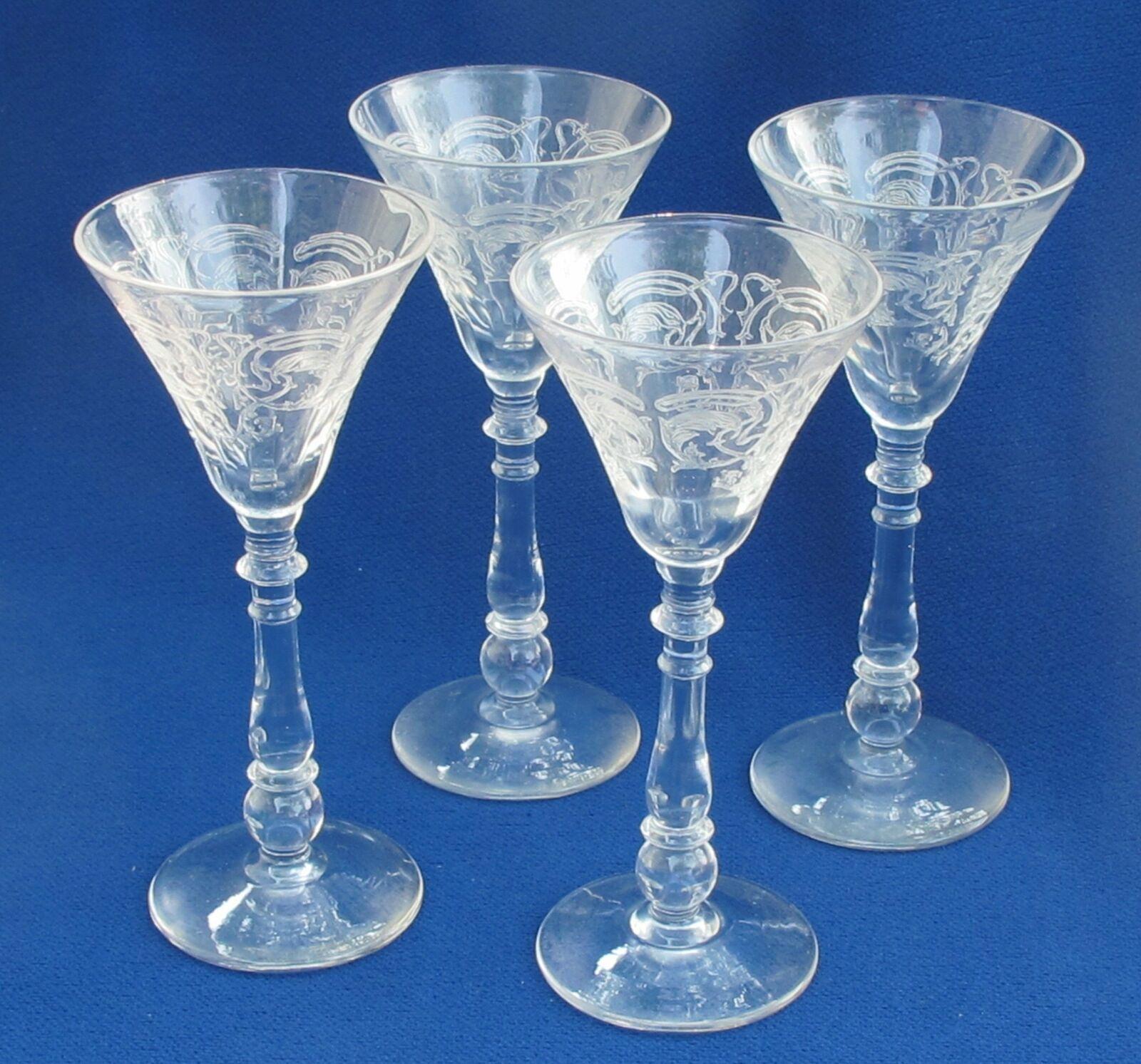 4 Needle etched glass liquor stemware Bryce ? antique4 Needle etched glass liquor stemware Bryce ? antique4 Needle etched glass liquor stemware Bryce ? antique