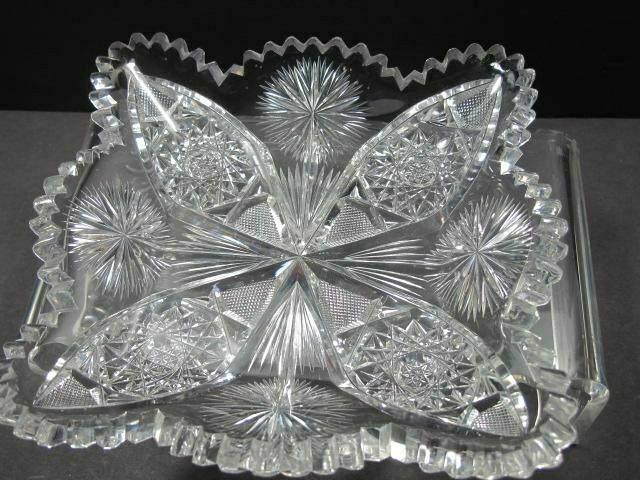 ABP cut glass square low bowl American brilliant period 1886 -1915ABP cut glass square low bowl American brilliant period 1886 -1915ABP cut glass square low bowl American brilliant period 1886 -1915