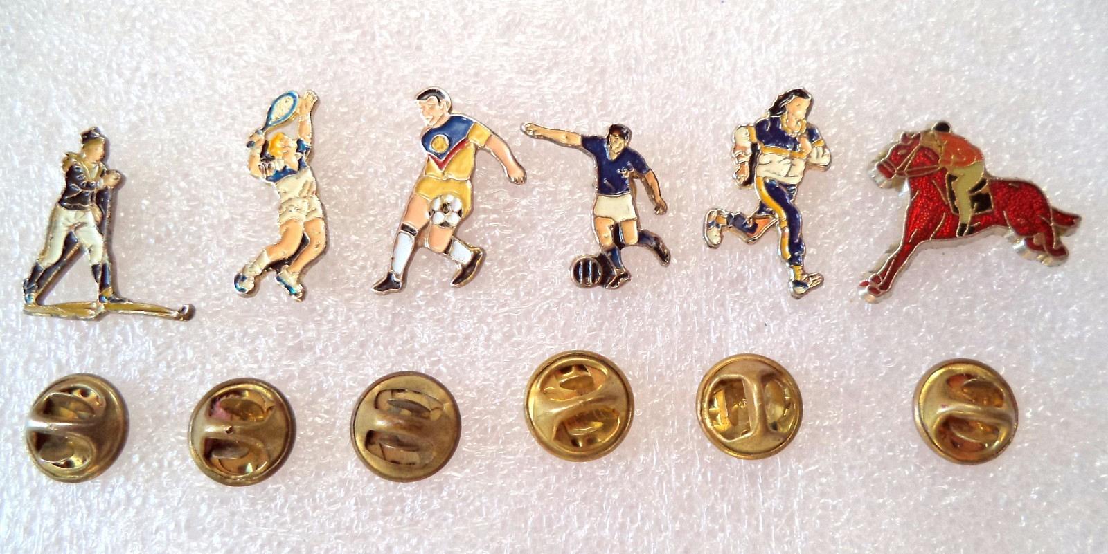 Different sport pin, badge. Football, Tenis, Ski, Horse Riding, Athletic