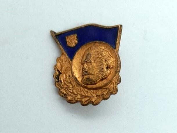 FDJ Youth Communism Karl Marx East Germany DDR GDR. Vintage enamel pin badge