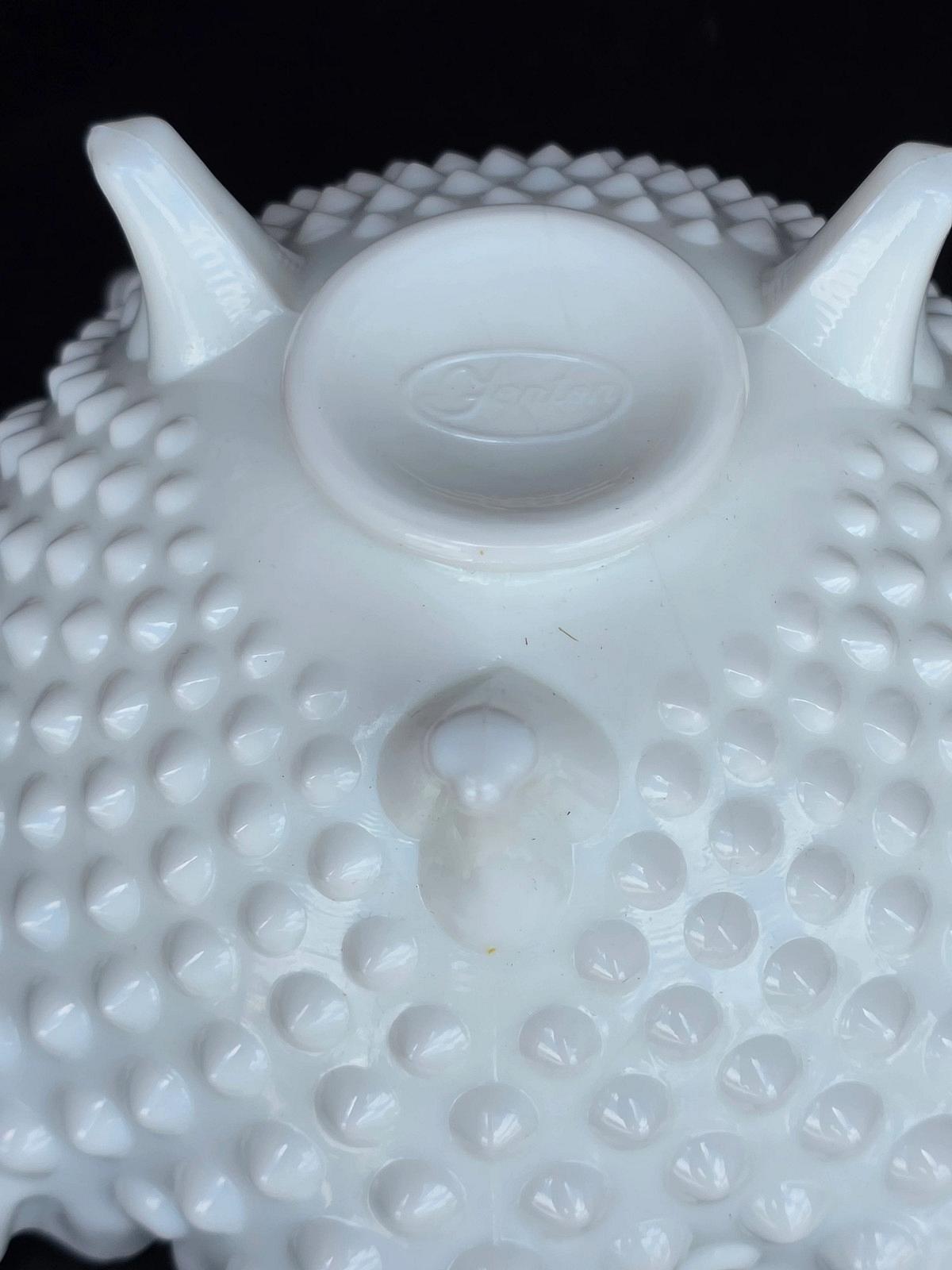 Fenton white Ruffled edge pedestal compote 3.75"high 8.5" in diameter. In very good condition no chips cracks or cloudiness It is in very good condition no chips cracks There slight scratches on the base.