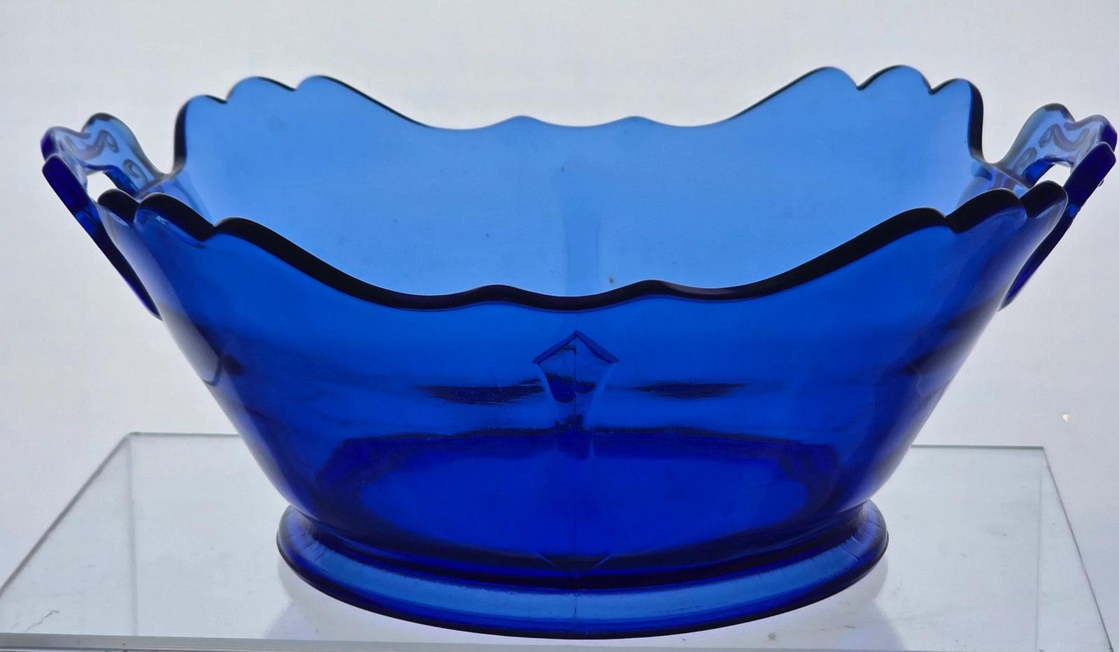 L.E Smith Glass blue double shield sq bowl Mt Pleasant pattern