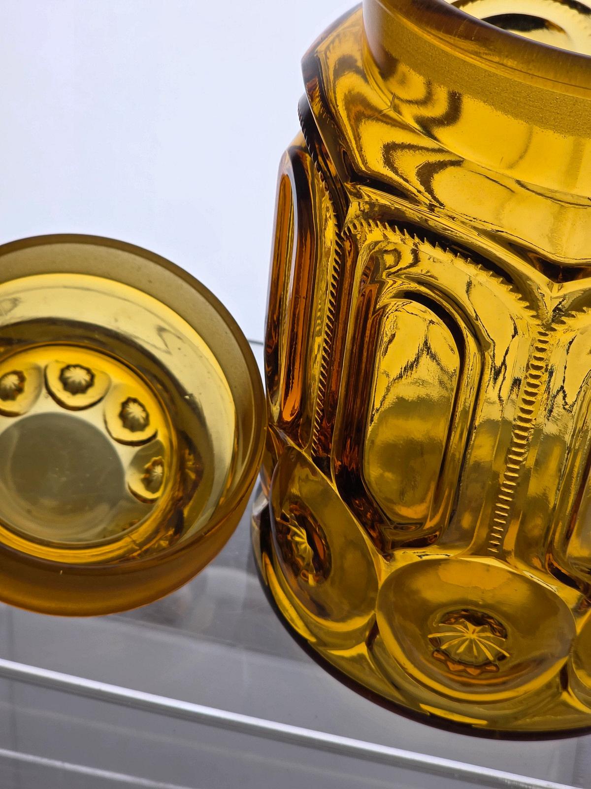 LE Smith glass amber moon and stars extra large canisterLE Smith glass amber moon and stars extra large canister