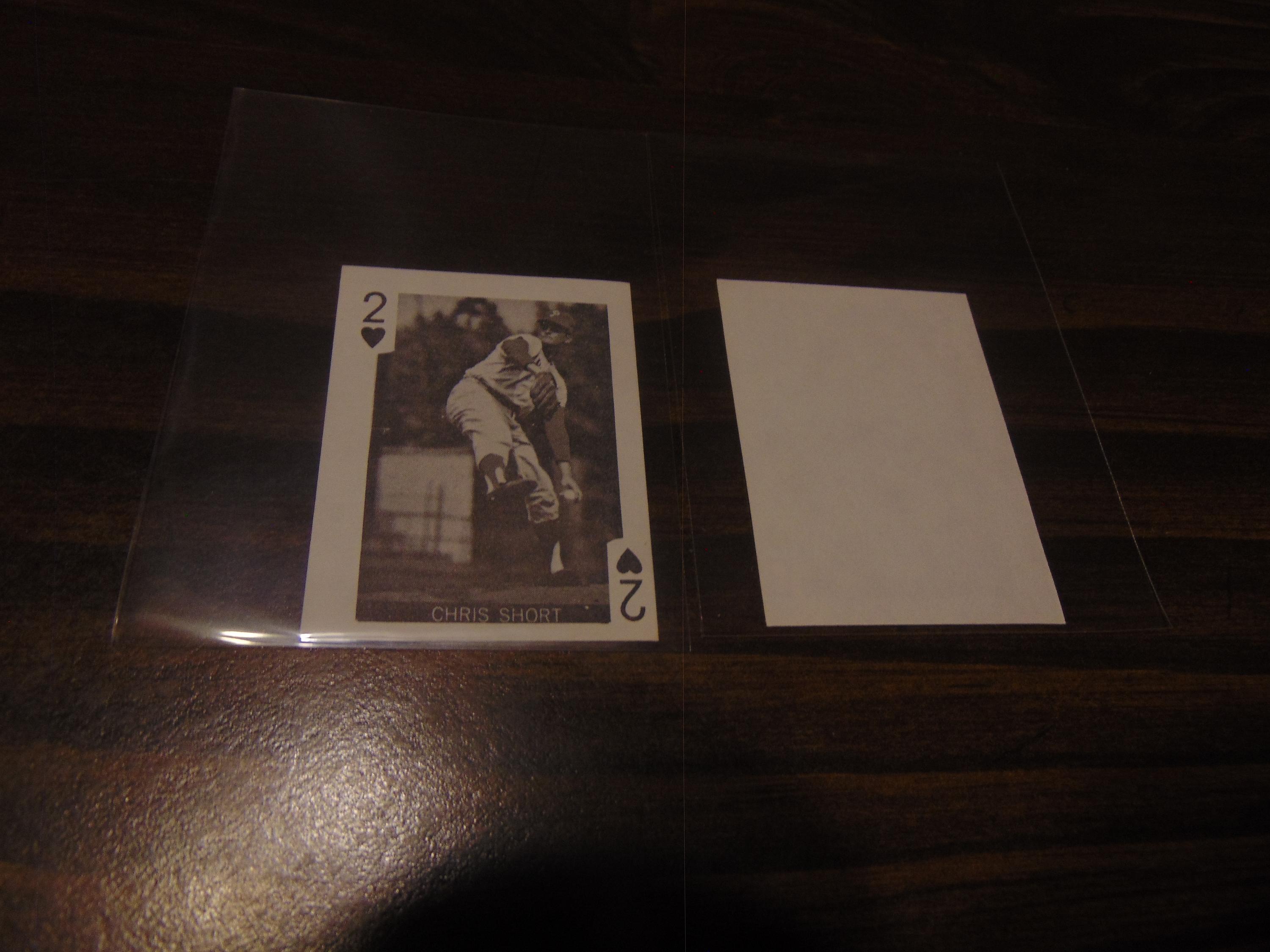nrmt condition-vintage mini mlb baseball playing card (measures 2 1/4 x 1 3/4 inch)b&w-blank back-front and back shown in picture-this was a gas station promo item in 1969-globe imports-chris short-phillies-remember,additional items/cards ship free!thanks for looking!